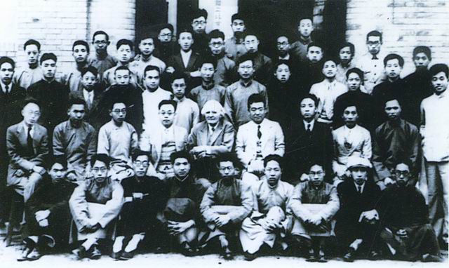 1936年北京大学地质系欢送毕业班。二排右起:金耀华、郁士元、何祚霖、谢家荣、葛利普、斯行健、高振西、王嘉萌、赵金科;四排右四为王鸿祯
