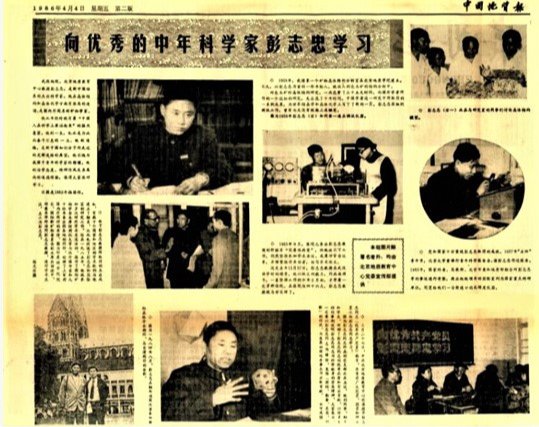 1959年,彭志忠领导建立了我国第一个矿物晶体结构实验室——北京地质学院矿物晶体结构实验室。没有实验设备,就领导几个年轻人,将一台医院用的旧X光机改装成衍射仪,在艰苦的条件下开启了中国的矿物晶体结构研究。