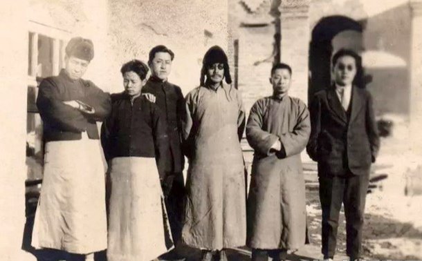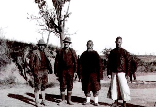 袁复礼(左一)、安特生(左二)在仰韶村遗址第一次发掘时与房东的合影