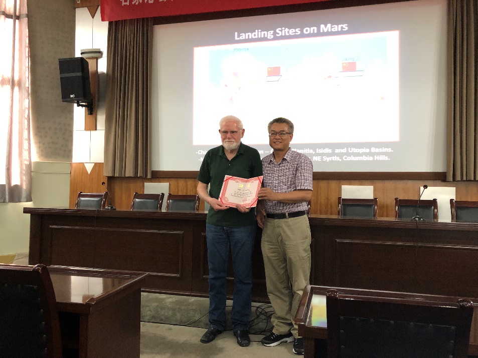 2018年6月21日,美国艺术与科学院院士James W. Head教授接受我校颁发的聘书,成为我校客座教授。James Head教授与我校行星科学研究所有着长久的合作关系,成为我校客座教授后James Head教授将在建设行星地质学课程、联合培养博士生和进行合作研究等方面做出贡献。