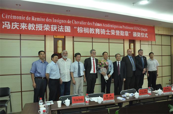 2014年6月12日冯庆来教授荣获“法国棕榈教育骑士荣誉勋章”颁奖仪式在在线av 举行,法国驻武汉总领事马天宁为其颁奖,以表彰他在中法科研国际合作及教育交流领域所做出的突出贡献。