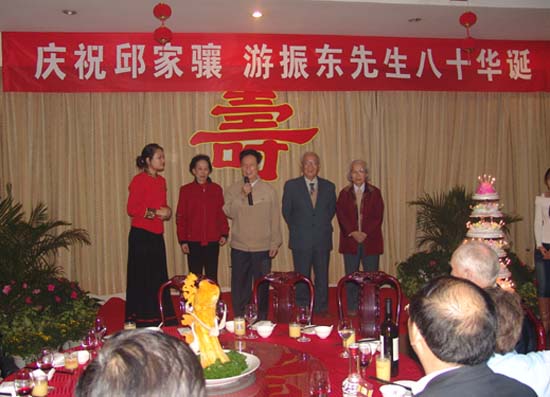 2007年11月9日,在线av 隆重举行邱家骧教授、游振东教授八十华诞庆祝会,校党委书记郝翔、副书记傅安洲、副校长欧阳建平及在线av 相关职能部门领导,岩矿系全体老师出席了会议。校领导作重要讲话,高度评价了二位教授为在线av 作出的贡献,庆祝会由地学院分党委书记赵俊明主持。