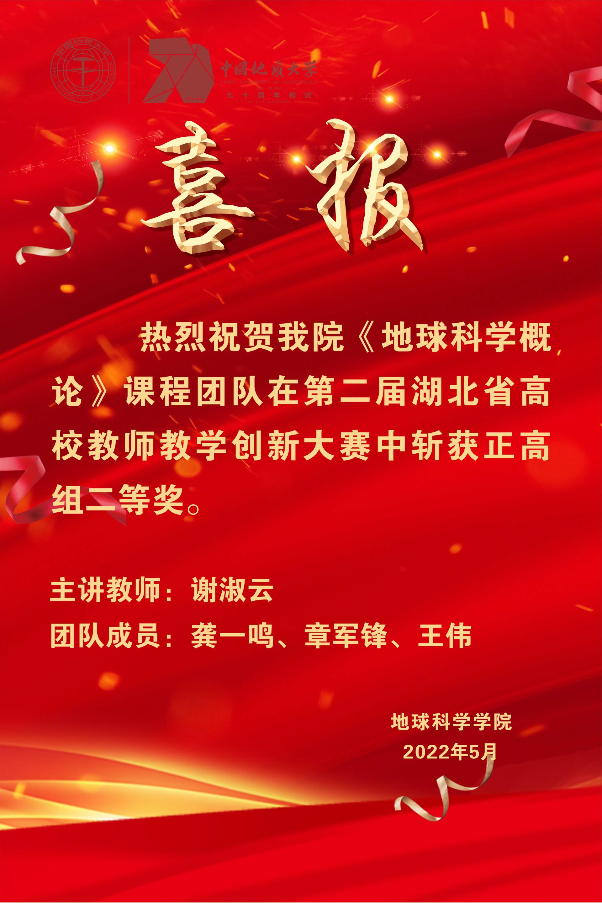 在线av 《地球科学概论》课程团队在5月14-15日举行的“第二届湖北省高校教师教学创新大赛”中荣获正高组二等奖。