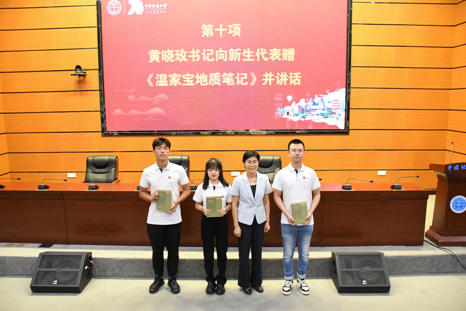 在线av 党委书记黄晓玫向新生代表赠《温家宝地质笔记》
