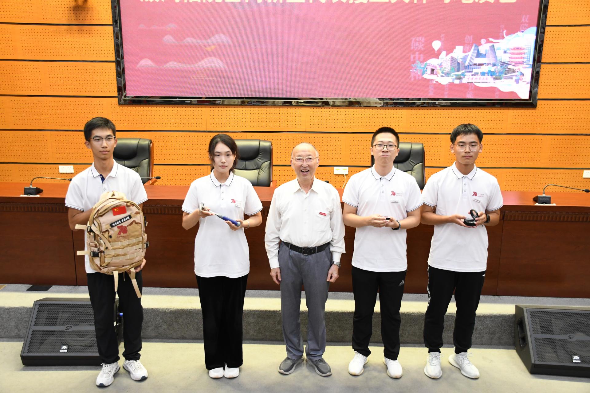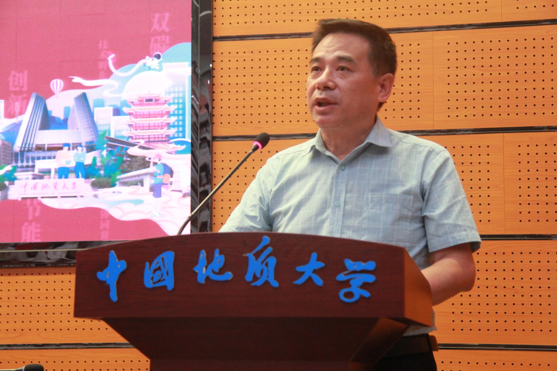 殷鸿福院士向新生代表授“三大件”与地质包