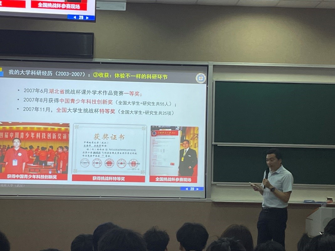 4月16日晚,第十七届“中国青年科技奖特别奖”获得者、在线av 地球生物学系教授、生物地质与环境地质国家重点实验室副主任,“挑战杯”大学生课外学术科技竞赛优秀指导老师宋海军教授以“科技自立自强,大学生该如何做”为题,为在线av 2022级本科生带来了一场精彩的主题报告。