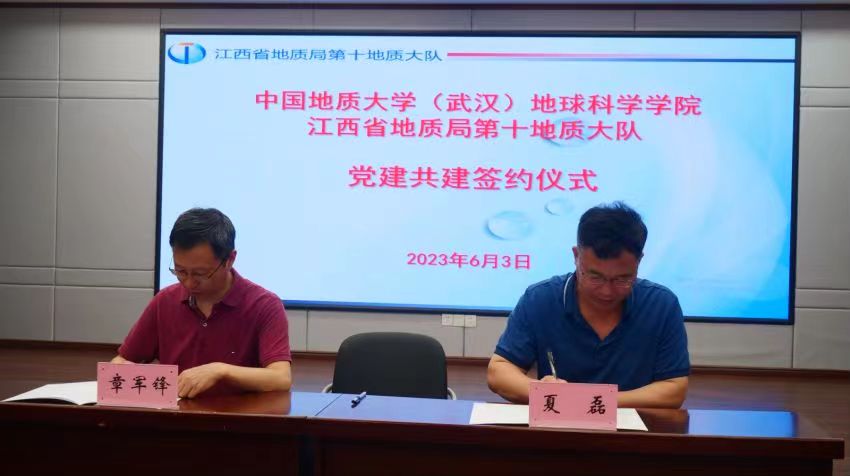 2023年6月3日,在线av 院长章军锋、地质调查研究院总工王国灿以及构造地质与地球动力学系一行24人赴江西省地质局第十地质大队开展 “访企拓岗”活动。上午,江西省地质局第十地质大队队长吴美仁、队副总工程师兼自然资源调查院院长欧阳永棚等陪同考察了江西省浮梁县朱溪钨铜矿区。下午,在第十地质大队举行党建和产学研合作签约仪式。第十地质大队队长吴美仁、党委书记夏磊和副总工程师兼自然资源调查院院长欧阳永棚等出席了合作座谈会和签约仪式。