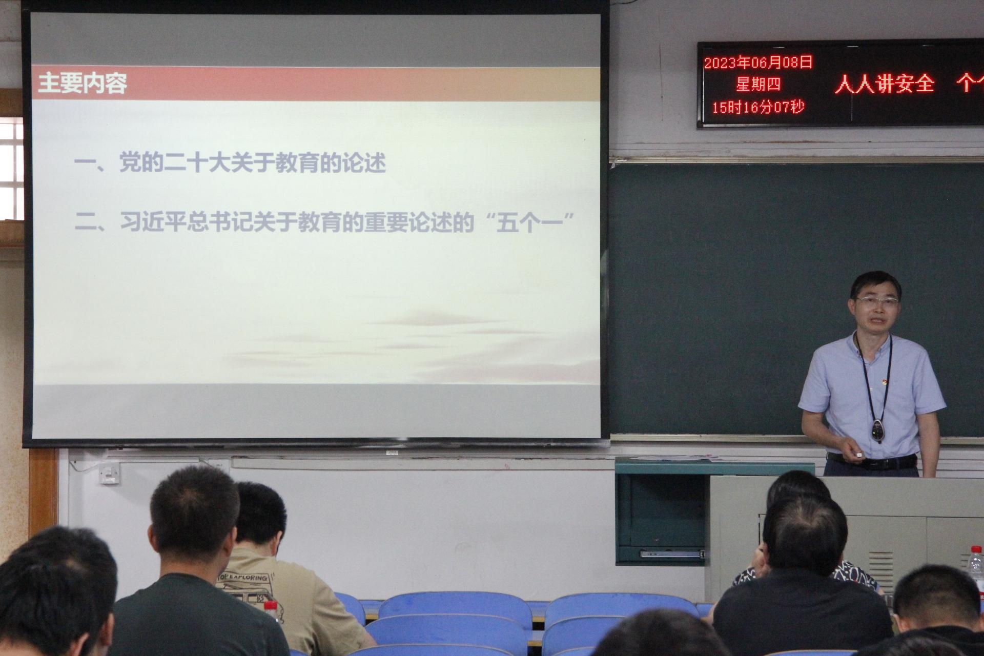 6月8日,学院党委召开学习贯彻习近平新时代中国特色社会主义思想主题教育暨全面从严治党工作会,学院领导班子成员、全体教师党员和学生党员代表等100余人参加会议,会议由学院党委书记周刚主持。