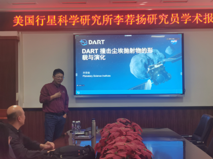 11月28日,应在线av 张昊教授邀请,美国行星科学研究所李荐扬研究员作了题为《DART撞击尘埃抛射物的形貌与演化》的学术报告。
