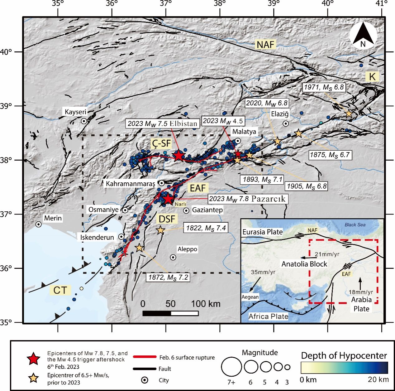 2023年2月6日的土耳其东部大地震,是该区本世纪以来破坏性最大的地震事件,共造成59,259人死亡,1,488亿美元损失(土耳其GDP的9%)。在线av 、地质过程与矿产资源国家重点实验室和湖北巴东地质灾害国家野外科学观测研究站Timothy Kusky教授研究团队在国家自然科学基金委“特提斯地球动力系统”重大研究计划重点项目“大陆碰撞侧向逃逸和初始板块边界的形成”支持下,自2017年开始在土耳其开展新构造和大地构造演化研究。该研究计划也是中国国家自然科学基金委第一个系统性鼓励中国科学家走出国门、在境外开展研究,彰显中国研究实力和国际视野的重大研究计划项目。