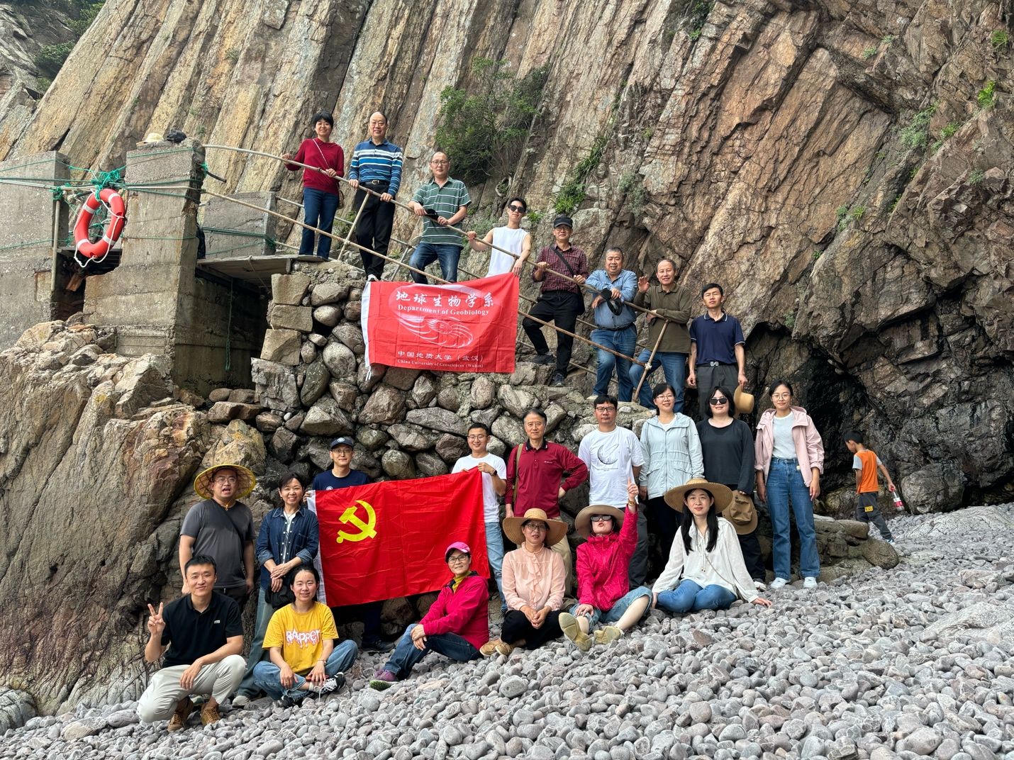 2024年4月20至21日,在线av (武汉)在线av 地球生物学系教师与院直党支部组织了“党建引领-地质认识实习路线拓展”集体备课活动,这次活动不仅为教师们提供了观赏壮美地质景观的机会,更凝聚了团队力量,促进了党建与地质教育的深度融合。活动中,备课组先后深入探访了浙江宁波象山县的多个地质遗迹现象,包括花岙岛柱状节理群、石浦灰岩地层剖面和红岩长廊海蚀平台,并参观了象山县半边山党建教育基地。