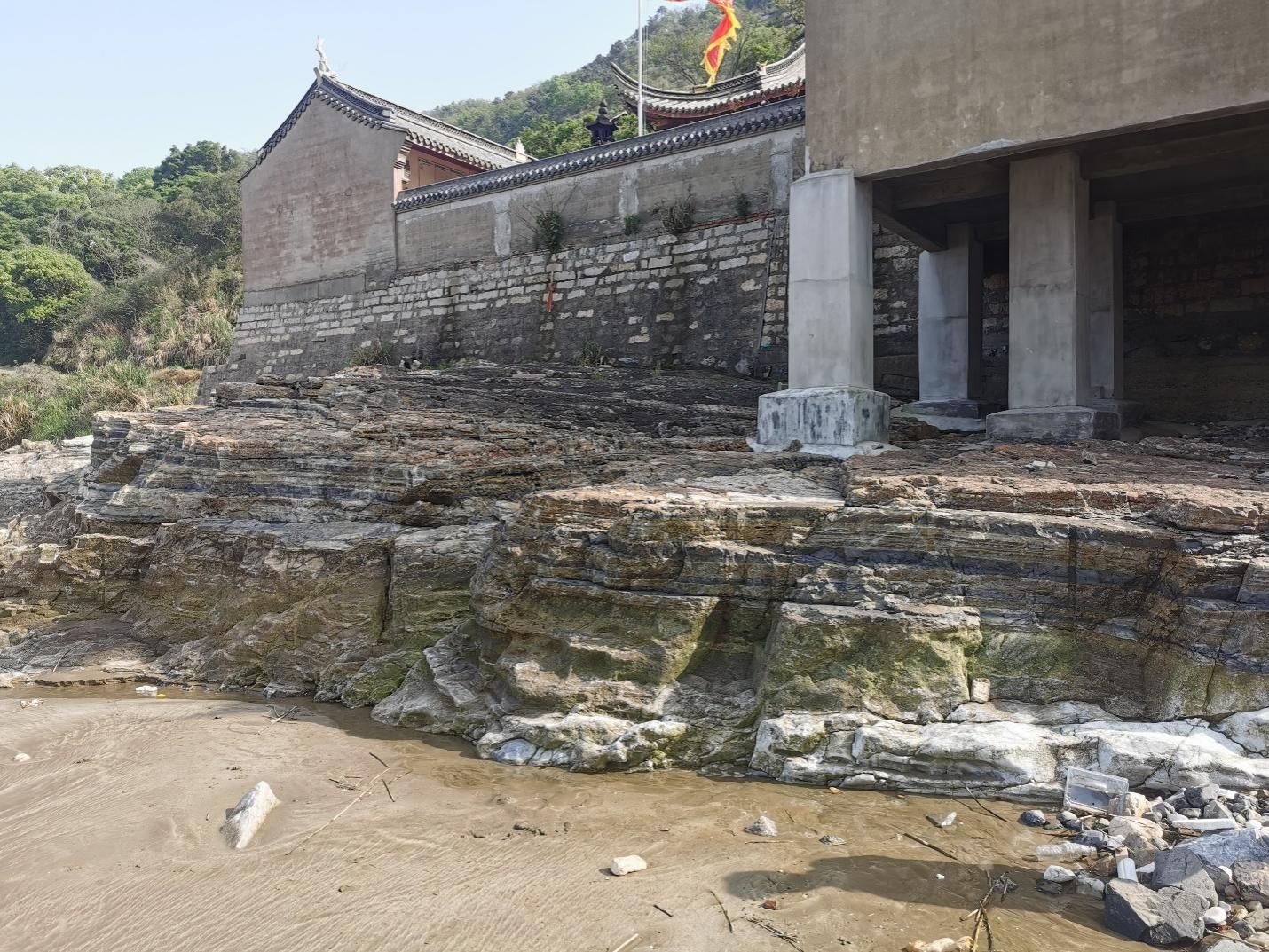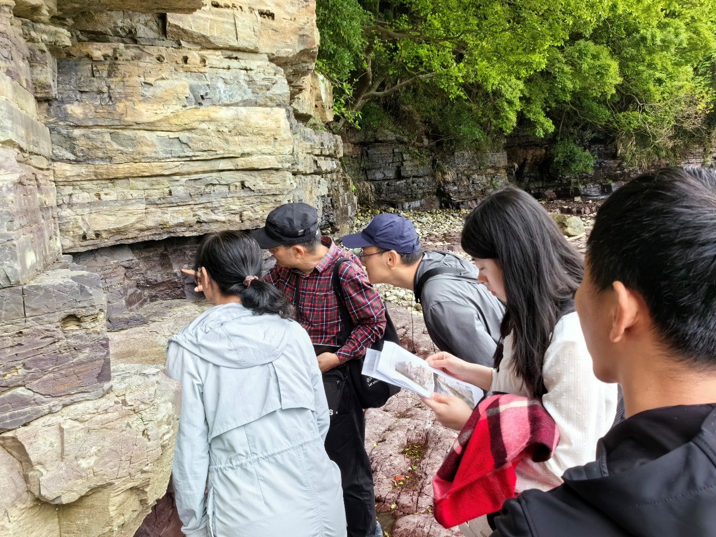 4月20日下午,老师们观察了石浦灰岩地层剖面,该剖面是地质学界长期探索的科研迷地,海相灰岩产出的独特地质环境,为深入了解海陆过渡相扇三角洲和潮坪—泻湖亚相的形成机制提供了绝佳场所。碎屑岩夹层中保存的含叠层石等礁灰岩层,更是对古生物学有着重要探索价值。