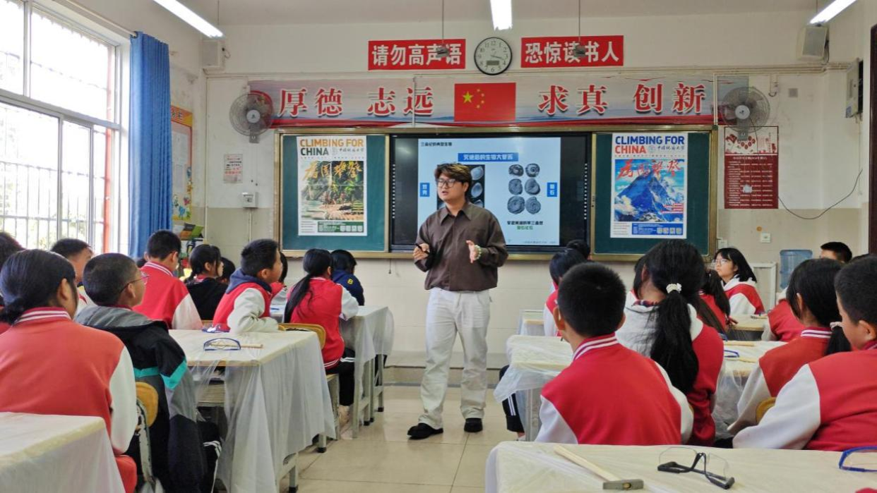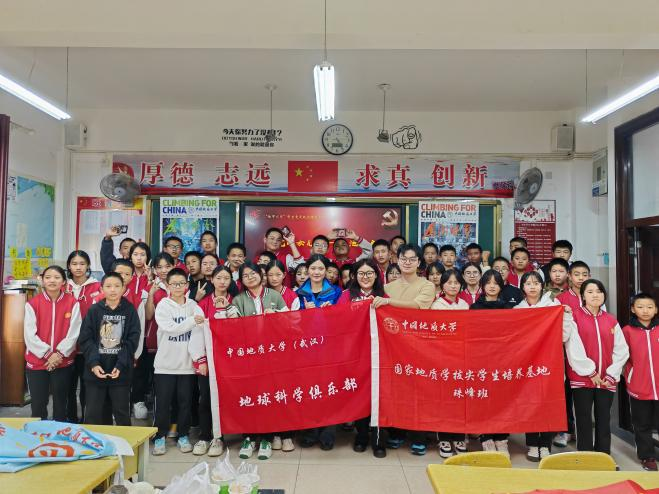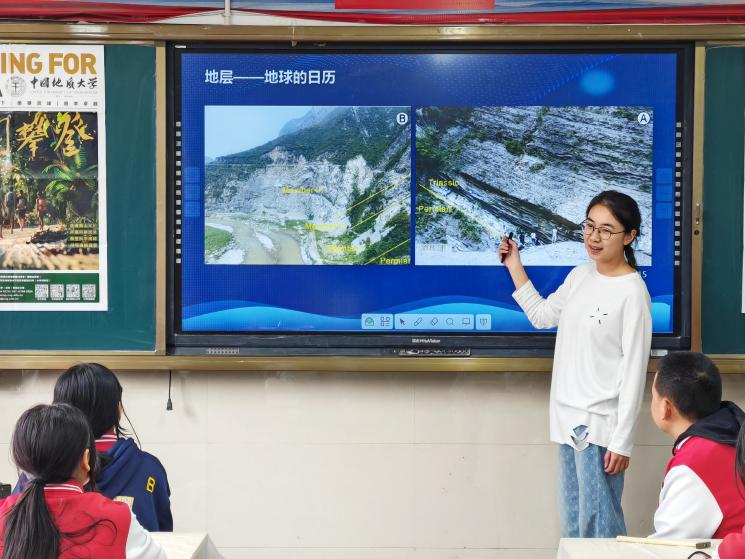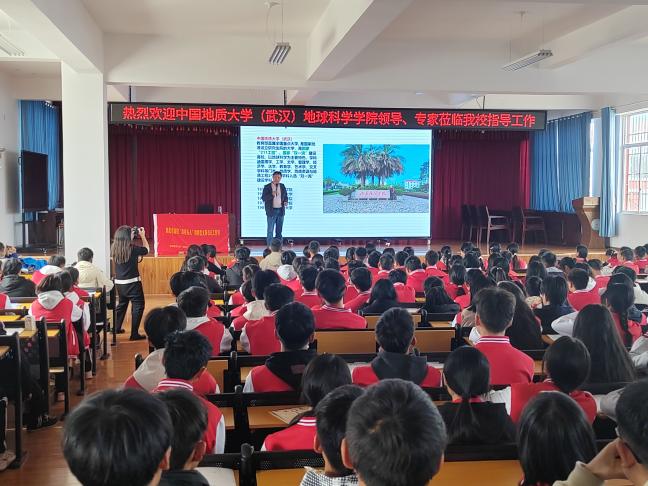 11月21日,在线av “地学之光”科普讲解队走进云南省楚雄龙江中学,与在线av (武汉)第26届研究生支教团联合举办“把地球故事讲给你听”系列科普活动,旨在大力宣传弘扬科学家精神,引导广大中学生树立远大理想。在线av (武汉)在线av 教授马昌前、在线av 党委副书记赵得爱、在线av “地学之光”科普讲解队成员姜昕、李槟馨、罗明辉、李月如参加本次活动。