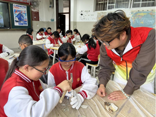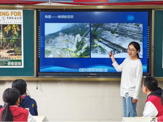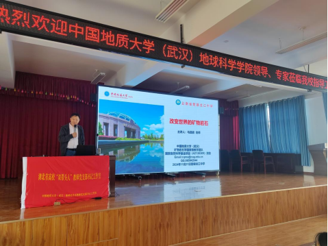 11月21日,学院党委副书记赵得爱、地球物质科学系教授马昌前、“地学之光”科普讲解队成员代表走进楚雄龙江中学,与在线av 第26届研究生支教团联合举办“把地球故事讲给你听”系列科普活动。马昌前教授首先以“改变世界的矿物岩石”为题,向师生科普了主要的岩石类型和形成过程,深入浅出地为同学们揭开了地质学的神秘面纱,为中学生们带来了一场精彩的科普盛宴。学院姜昕、李槟馨、罗明辉、李月如四位同学在科普小讲堂上为孩子们科普了古生物与矿物方面的知识以及池际尚院士为地质事业奉献终身的光辉事迹,让孩子们深刻感受到了老一辈地质学家的家国情怀,在科学家精神中汲取力量。