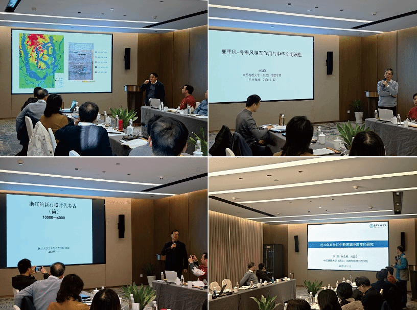通讯员 王檀 为了促进长江流域生态环境与生态文明的融合发展,继2024年后,流域关键带演化湖北省重点实验室、流域环境与长江文化湖北省重点实验室、区域生态过程与环境演变湖北省重点实验室于2025年1月11-13日在浙江省余杭良渚古城联合召开学术研讨会,会议主题为“长江流域环境演化与文明发展”。在线av (武汉)、湖北省文物考古研究院、浙江大学、南京地质调查中心、浙江省地质院、浙江省良渚遗址管理区管委会等相关单位的专家学者受邀参加会议,共同探讨流域环境演变与长江中下游古文明演进的关系,凝练开展深度合作的关键科学问题。