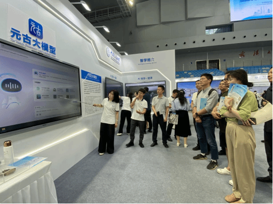 2025世界数字教育大会在湖北武汉举办,大会设置四个现场观摩点,展示各高校落实国家教育数字化战略创新实践的不同类型。武汉大学高等教育现场展示观摩点,我校有3个项目参展,其中元古大模型、AI地学一堂课分别来自在线av 宋海军和马强老师的团队。 5月16日下午,在线av 组织各系10余名青年教师随本科生院前往武汉大学观摩,深入了解教育数字化转型的前沿成果,学习数字化教学的先进经验。