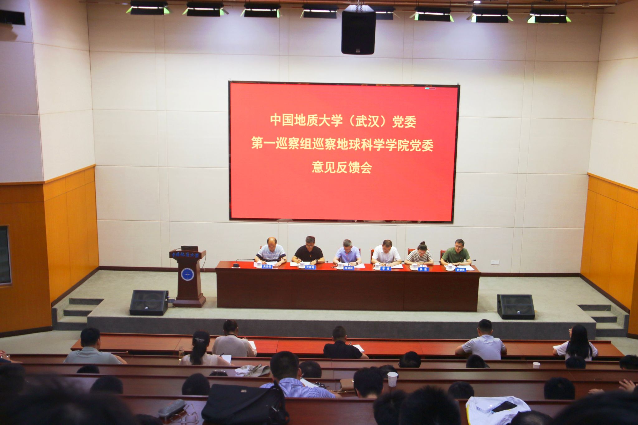 校党委副书记、校长李建威同志,党委巡察办主任晋曦同志,巡察组组长资源学院党委书记汪再奇同志,副组长机电学院党委副书记吴迪同志,巡察组成员张健同志、高思宇同志、陈文婷同志、高为同志,在线av 领导班子全体成员参加反馈会议,学院全体教职工、民主党派人士和学生代表等列席会议。