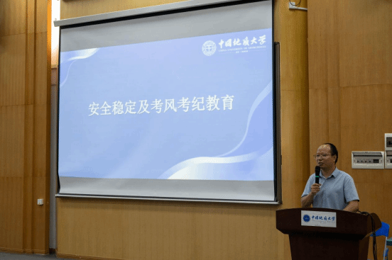 党委副书记、李四光学院常务副院长赵得爱向全体学生作安全稳定和考风考纪专题教育,带领同学们学习在线av