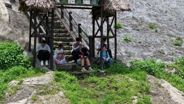 中午,偶遇黄冈大别山世界地质公园管理局的工作人员,他们被同学们在酷暑下野外认真的工作精神所触动,热情地将师生们带往地质文化村用餐,探讨在线av 科研与基层人民的关系,深感回馈社会、回报祖国的责任重大。同学们炎热的中午短暂享受了室内就餐的短暂凉爽,在地质文化村与工作人员合影后,又返回了野外处。下午,大家更加努力完成图件,小组间交流合作,分享各自不同的看法。