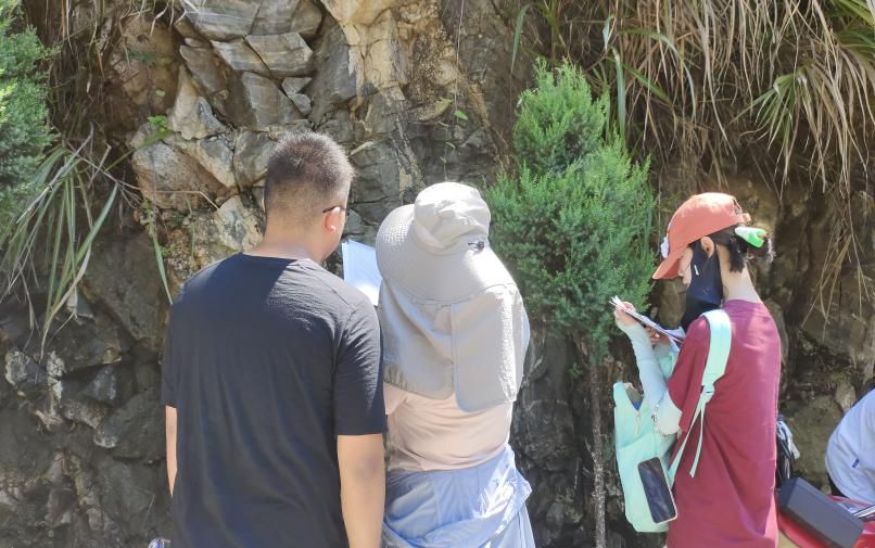 7月3日,同学们带着验证图件的目标和急切心情早早出发到达目的地。在剖面面前,每个小组和老师,小组之间都相互交换了看法,再一次带着问题去仔细观察露头展示的构造和部分熔融的现象。经过与老师和同学的交流,一些小组对剖面理解更加透彻,修改迅速,效率大幅提升。解决疑问后,全体师生集合返回武汉,圆满结束了此次地质路线实践活动。