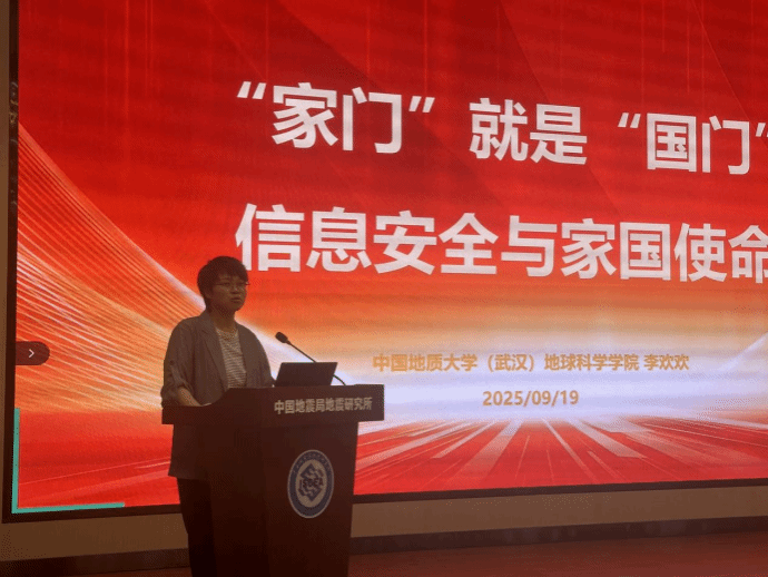 9月19日恰逢国家网络安全宣传周,学院党委副书记李欢欢受邀走进中国地震局地震研究所,为研究生群体带来《“家门”就是“国门”——信息安全与国家使命》专题科普报告。报告中,李欢欢以“总体国家安全观”为引领,深入剖析信息安全的重要意义,并聚焦科研数据全生命周期风险,强调地震数据等敏感信息对国家安全的战略意义。同时,她还针对研究生日常科研与生活,提出涉密文件管理、计算机安全防护、社交平台信息保护等实操建议,引导在场师生筑牢信息安全防线。