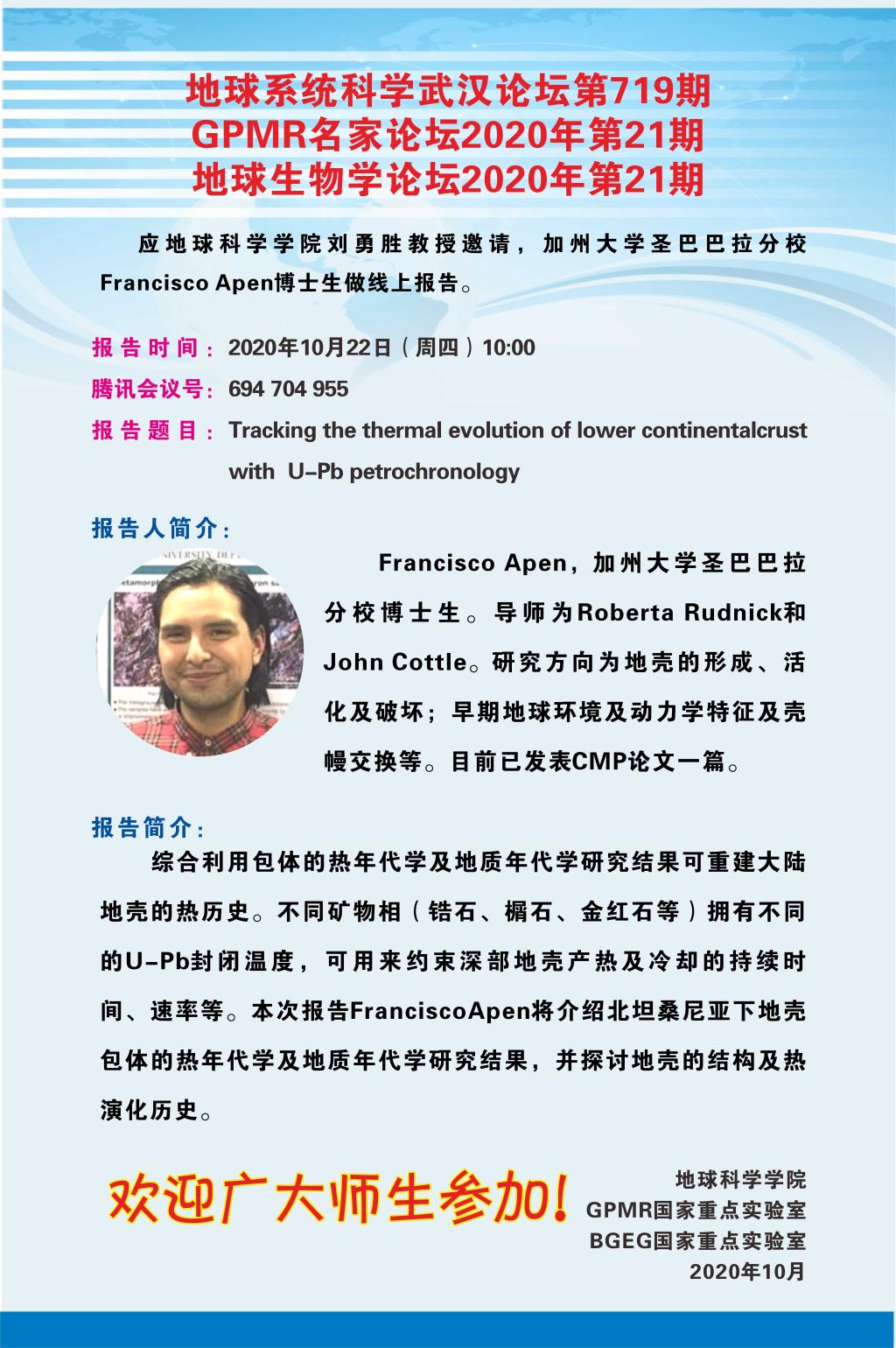 【10月22日】美国加州大学圣巴巴拉分校Francisco Apen博士生线上报告