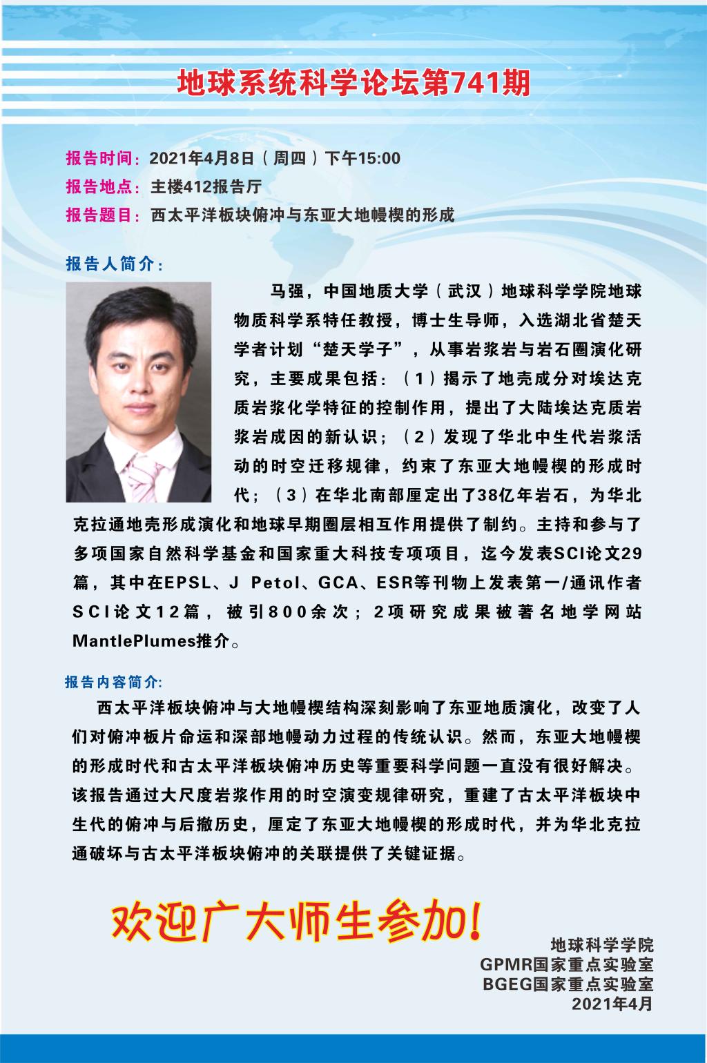 【4月8日】马强:西太平洋板块俯冲与东亚大地幔楔的形成