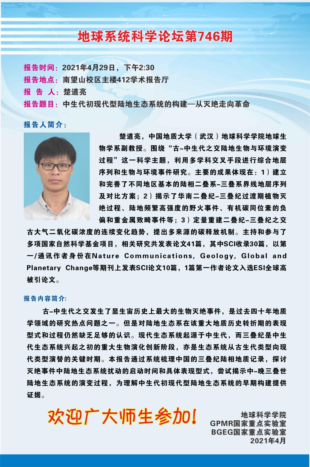 【4月29日】楚道亮:中生代初现代型陆地生态系统的构建—从灭绝走向革命