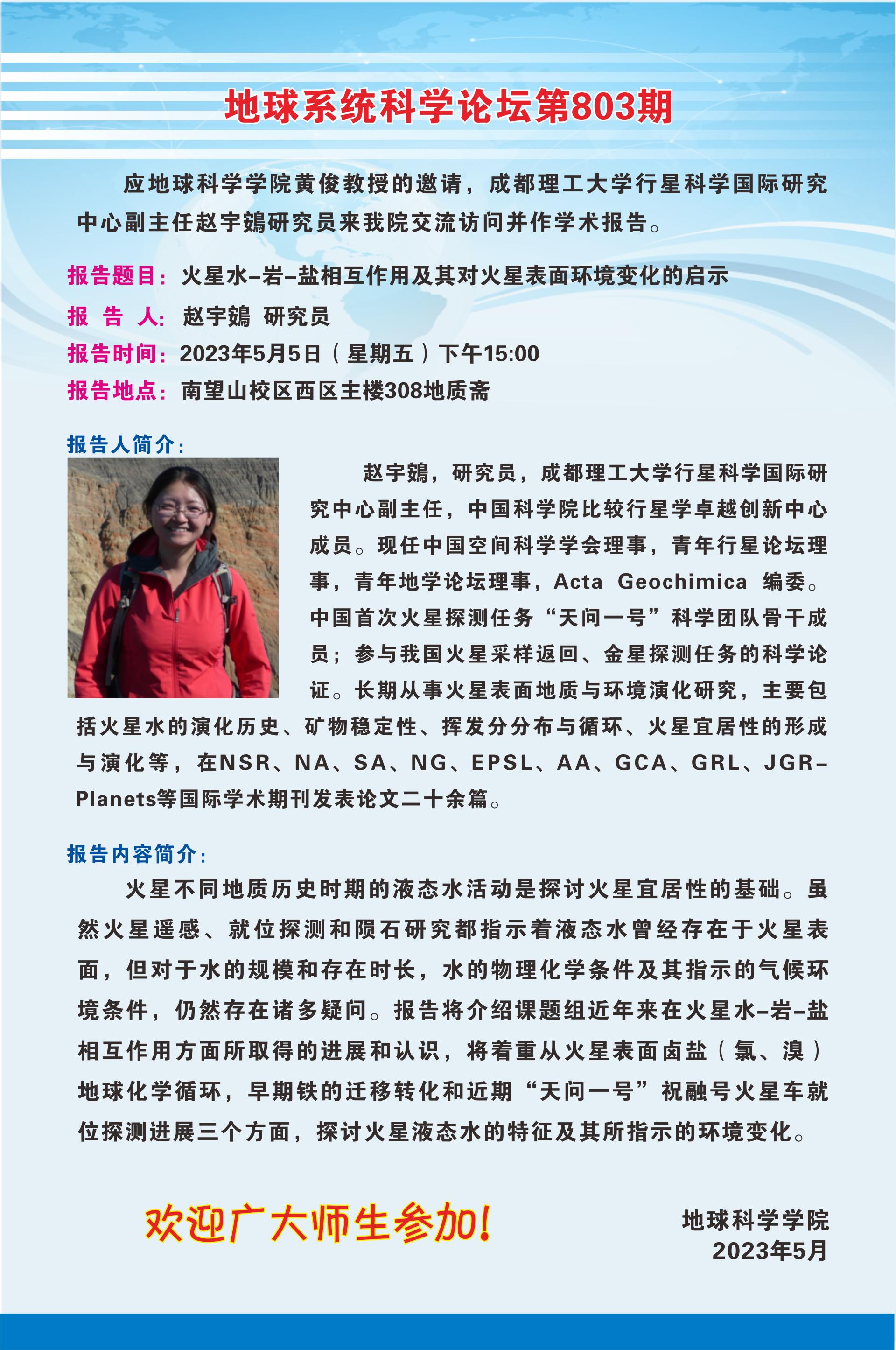 【5月5日】地球系统科学论坛(第803期)-赵宇鴳研究员