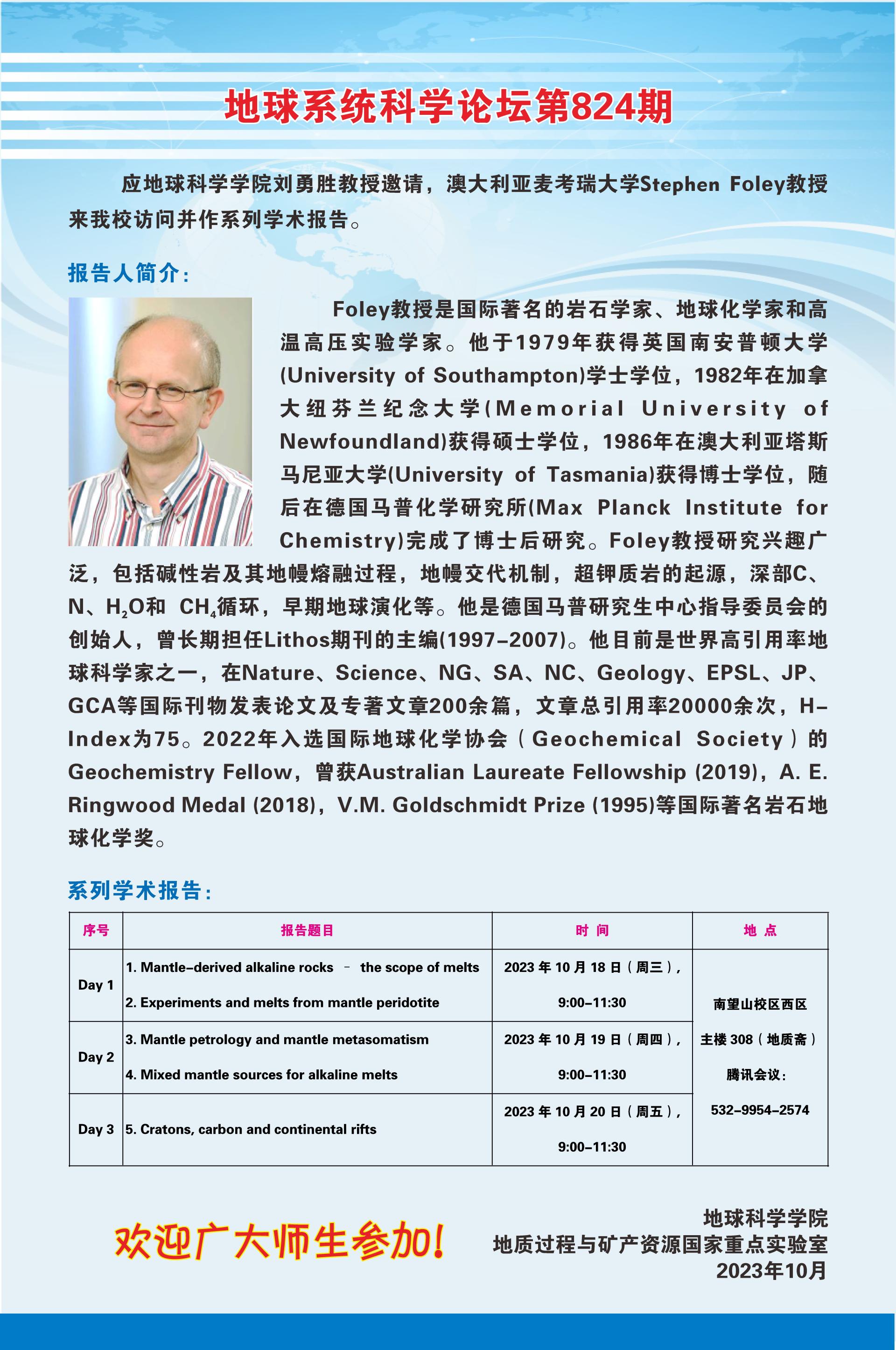 【10月18-20日】地球系统科学论坛(第824期)-Stephen Foley教授
