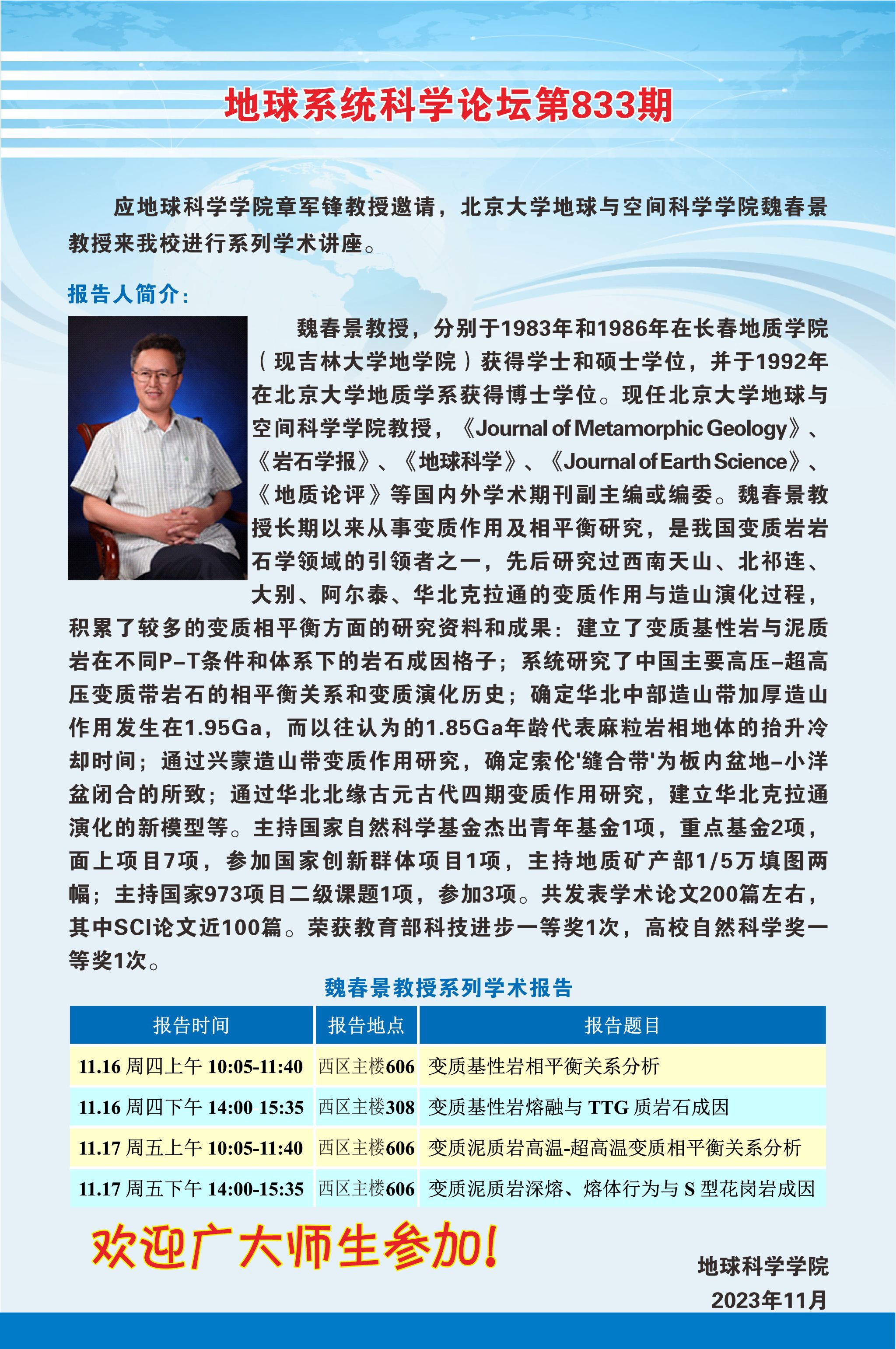 【11月16-17日】地球系统科学论坛(第833期)-魏春景教授