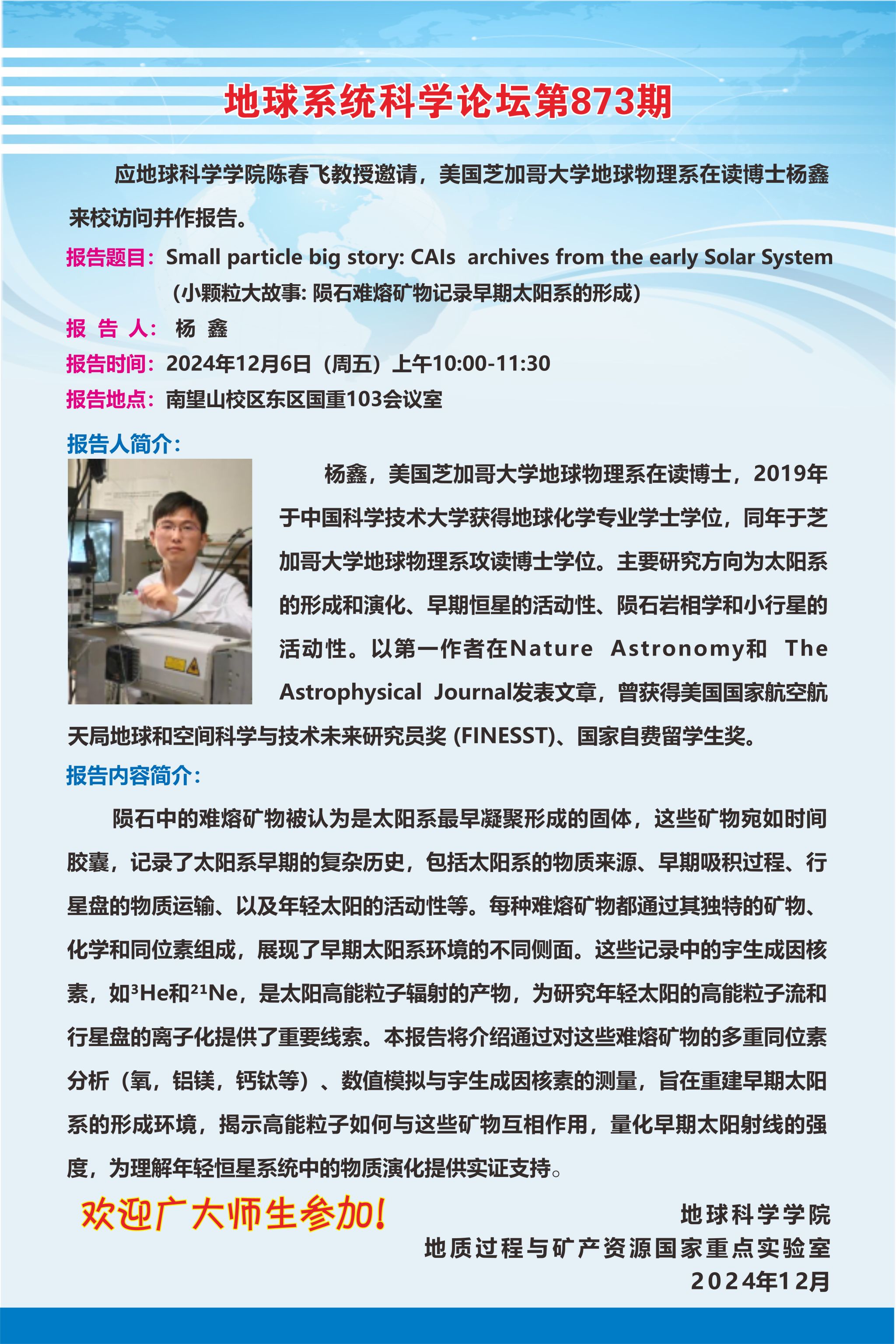 【12月6日】地球系统科学论坛第873期-杨鑫博士