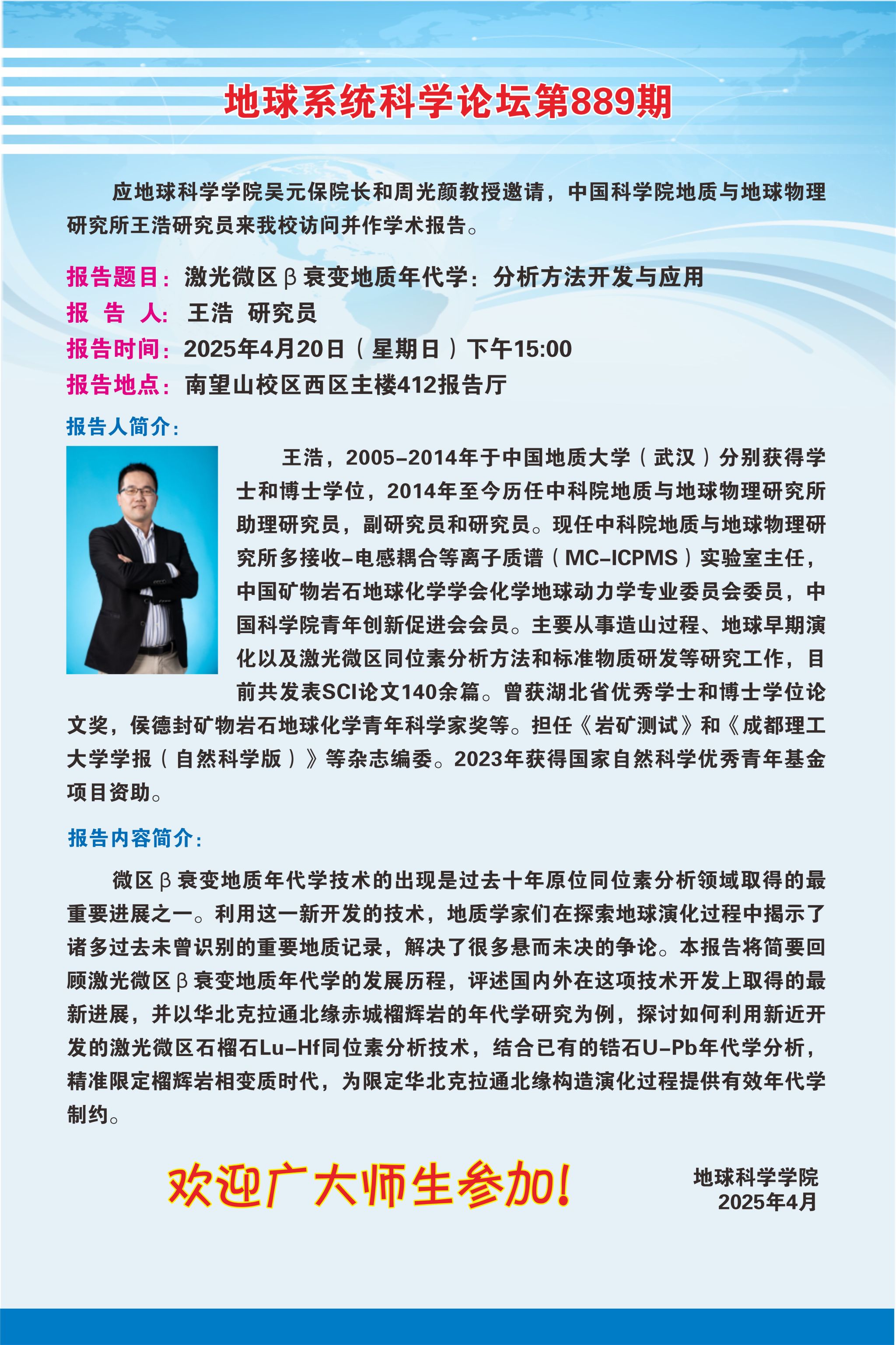 【4月20日】地球系统科学论坛第889期-王浩研究员