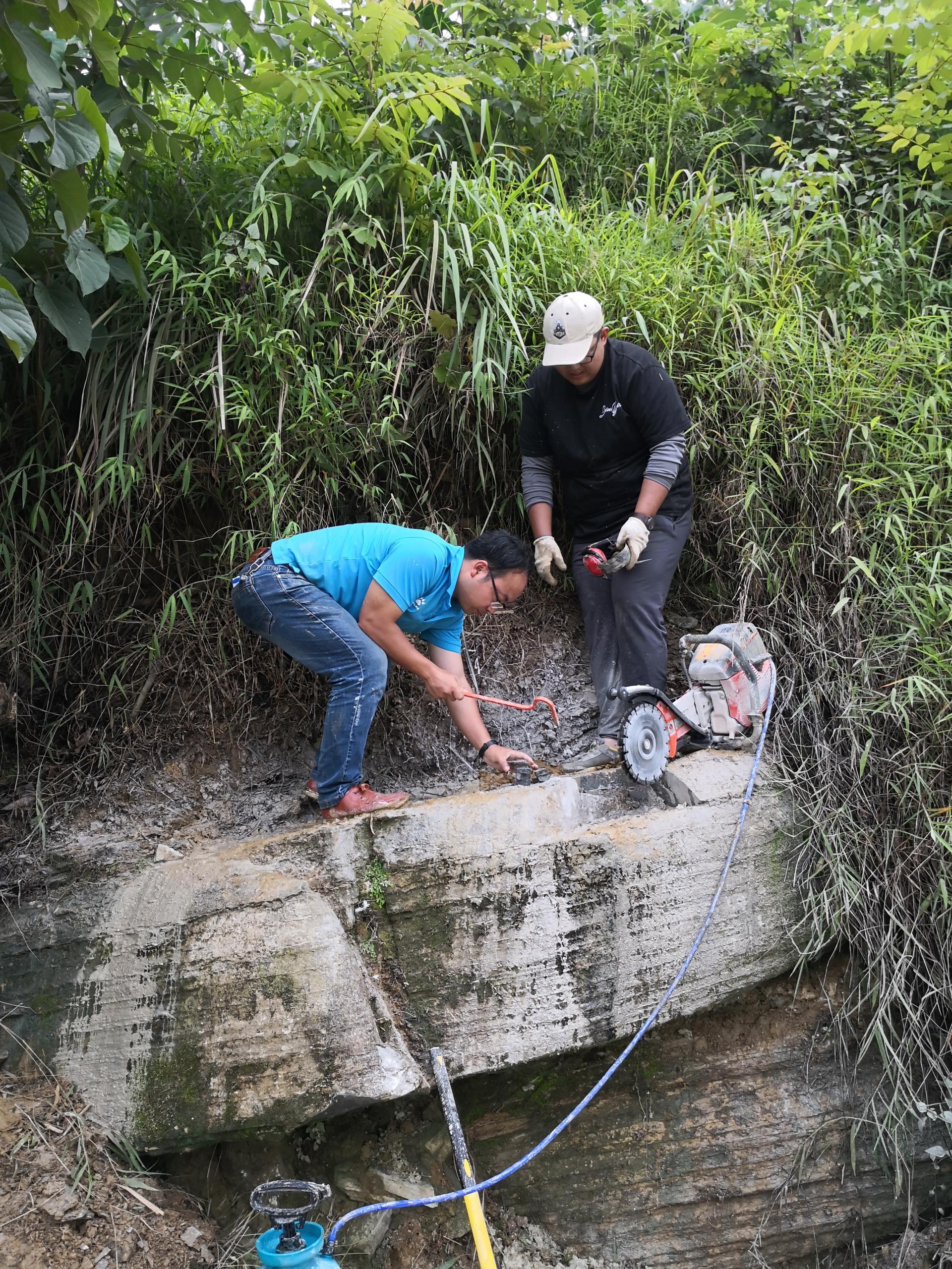 野外考察人员在利用电锯等工具对化石及其围岩进行处理(韩凤禄供图)