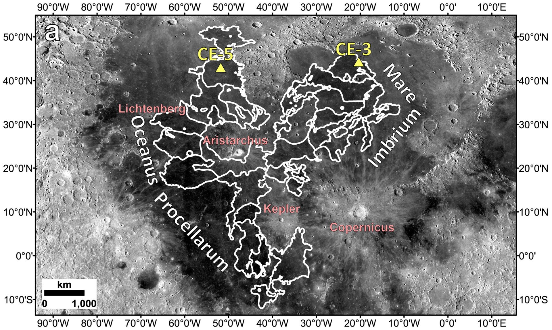 1. 月球年轻月海玄武岩分布及嫦娥三号、嫦娥五号任务着陆位置