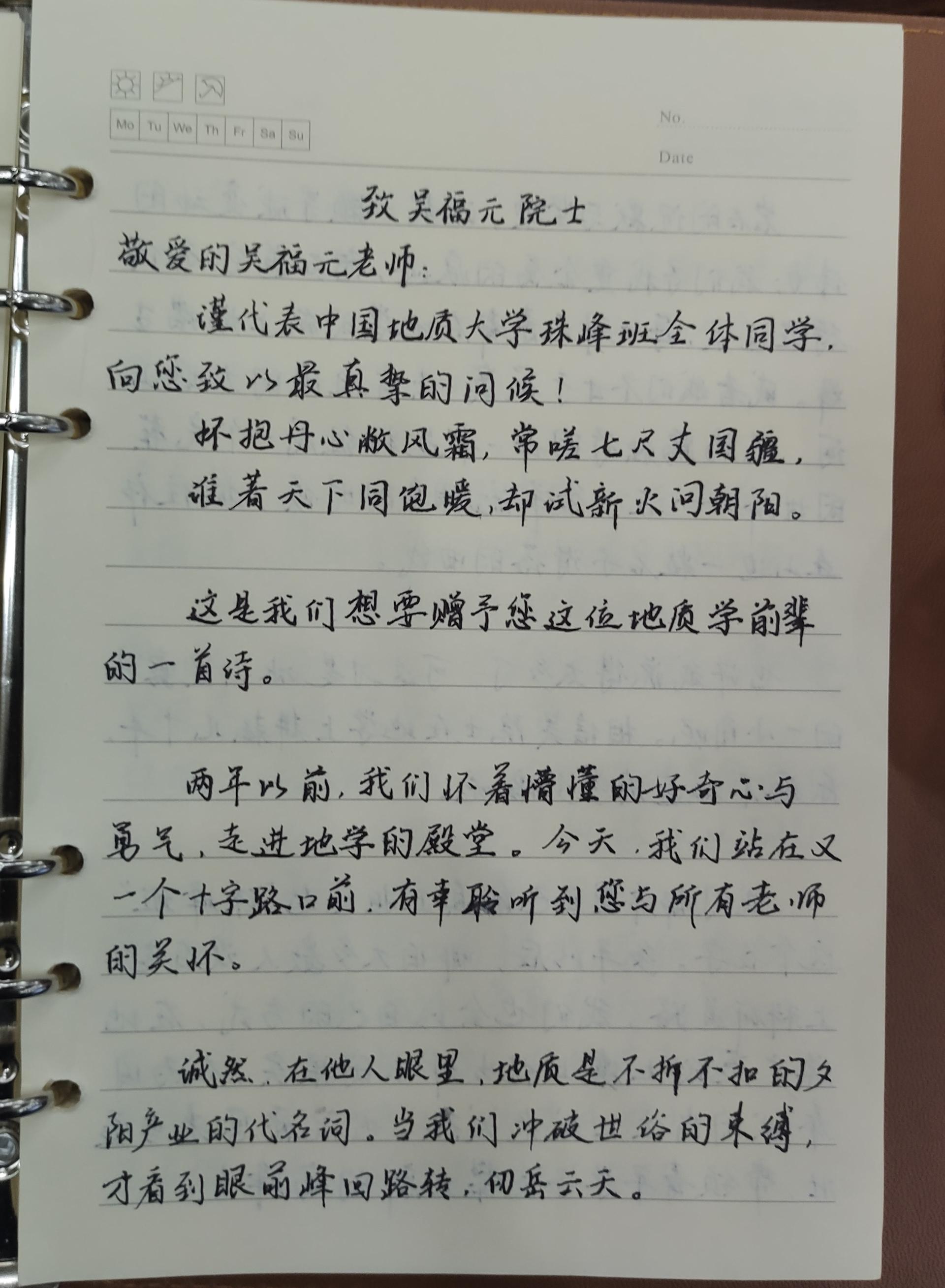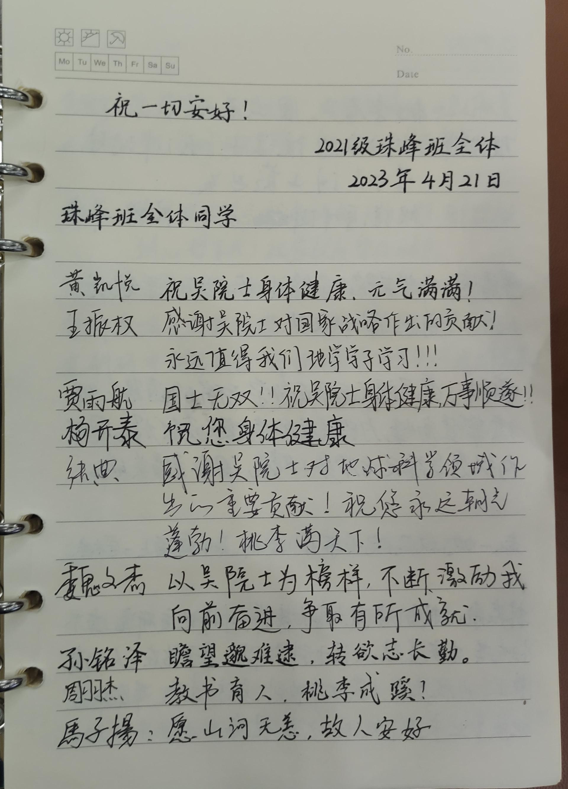 座谈最后,珠峰班学子为吴院士送上了精心准备的祝福和小礼物。吴院士勉励同学们胸怀“国之大者”、坚定学科自信、聚焦国家重大战略需求,将个人奋斗汇入国家发展洪流,在全面建设社会主义现代化国家贡献新时代地质学青年的智慧和力量。