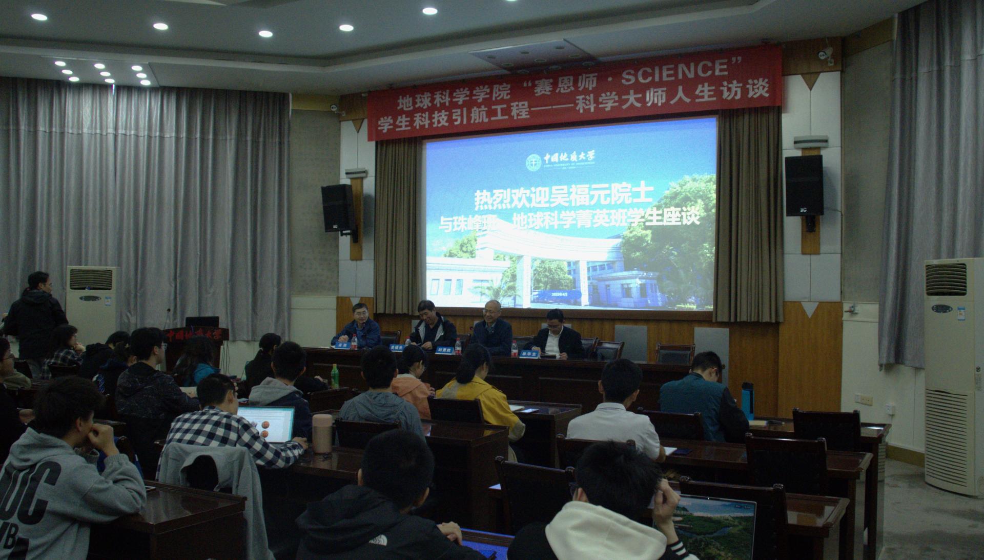 4月22日,在第54个世界地球日来临之际,中国科学院地质与地球物理研究所吴福元院士做客在线av “赛恩师·SCIENCE”科学大师人生访谈,与珠峰班、地球科学菁英班学子座谈。副校长刘勇胜主持座谈,在线av 党委书记周刚、李四光学院常务副院长单华生参加座谈。