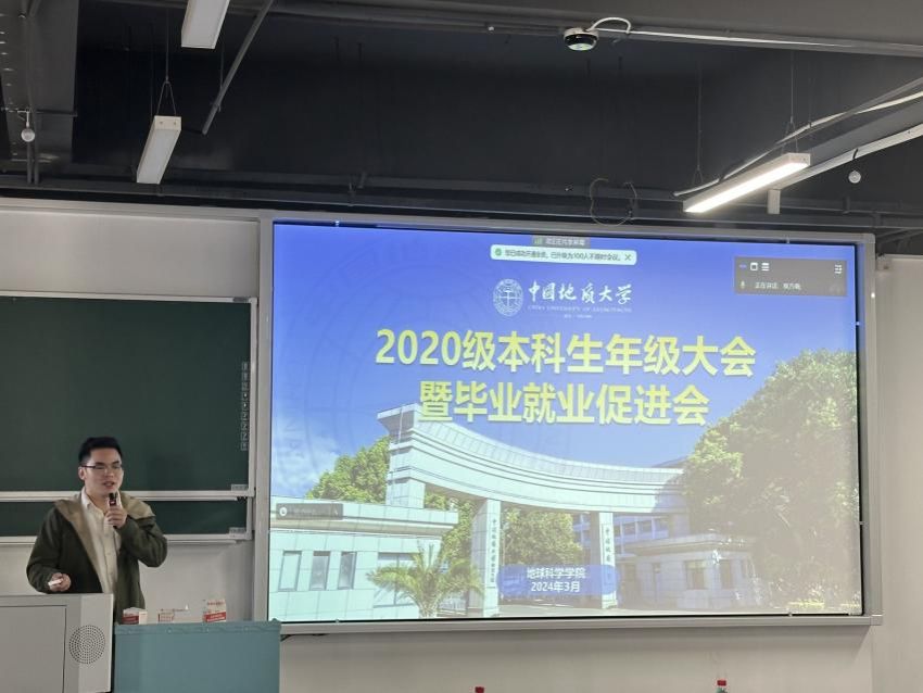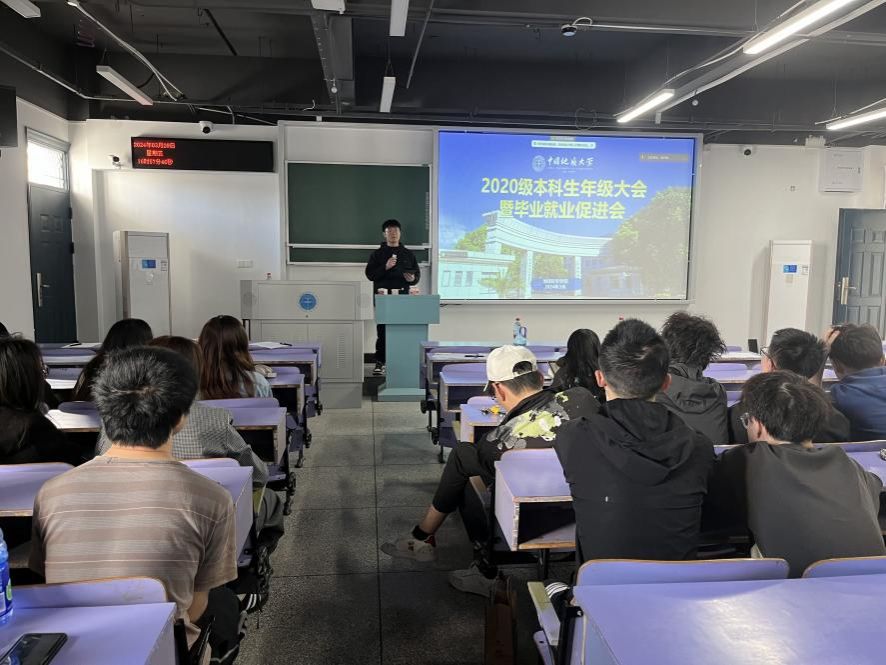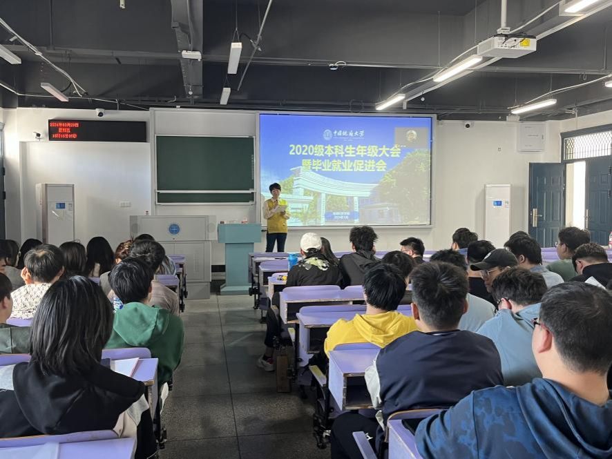 为加强学院本科生毕业论文的规范性,提升毕业论文质量,促进毕业生高质量就业,3月29日下午,在线av 在教三楼406召开2020级本科生年级大会暨毕业就业促进会。学院副院长朱宗敏,教务秘书吴婧、杨晓燕,辅导员蒋钰鑫与2020级全体本科生参加会议。会议由2020级本科生辅导员蒋钰鑫主持。