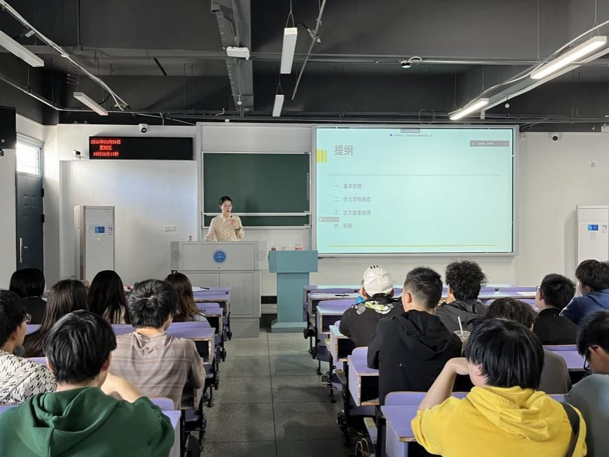 会上,学院副院长朱宗敏对在线av 2024年本科毕业论文的整体安排、写作规范、查重、答辩等内容作了详尽的讲解,并结合在线av 历年本科生毕业论文出现的高频同质性问题做了重点讲解。她重点强调了毕业论文整体时间安排与格式规范的相关内容,要求同学们发挥主观能动性,主动联系导师做好毕业论文撰写和答辩工作。
