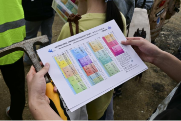 经过宋老师耐心细致的讲解后,大家分工协作,拿起地质锤,开始动手操作起来。同学们敲开一块块石头,仔细观察上面的形状纹理,有的化石比较小,同学们需要仔细观察,有不确定的问题向宋老师请教,宋老师也为同学们讲解古生物化石的形态特征、演变过程等专业知识,并告诉同学们挖化石的技巧与方法,循循善诱,让同学们在亲身实践的过程中加深对理论知识的理解。得到宋老师的点拨后,同学们的干劲更足了,更多的化石被挖出,同学们互相分享欣赏。