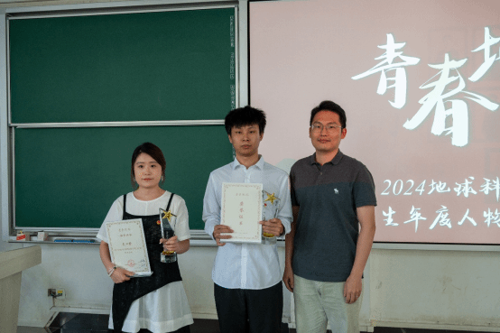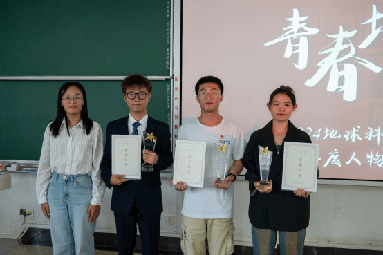 秦傲为“青春地标-2024地球科学学院学生年度人物”获得者颁奖