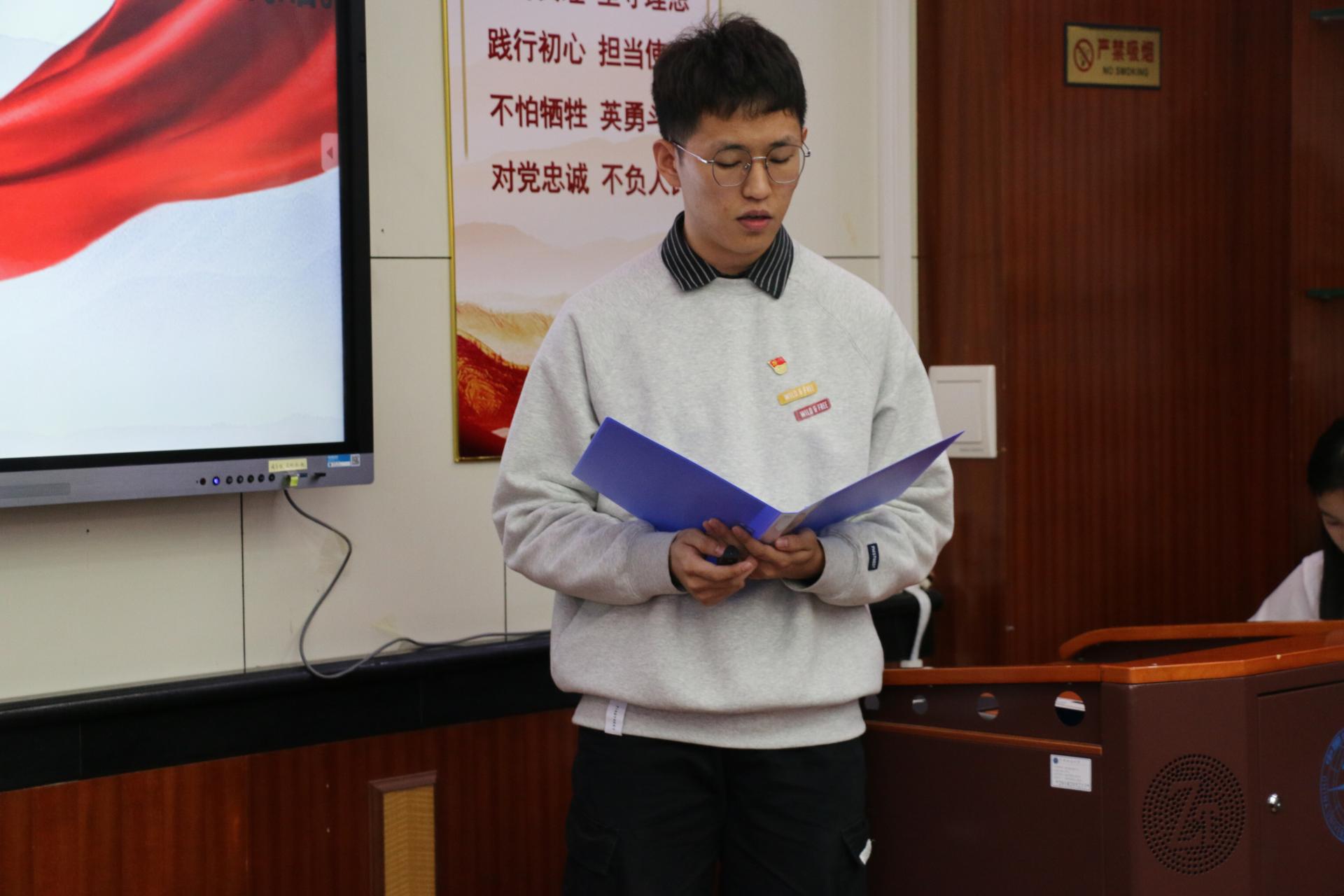 地球深部研究生党支部的杨鑫茂以《在历史中回望,从新时代出发》为题,围绕党的过去五年和新时代十年伟大变革的重大意义,以小窥大,从自身家乡发展引入,生动展现了祖国十年间发生的翻天覆地的变化,回顾了在祖国发展各个阶段做出突出贡献的青年典型人物事迹,并对站在新的历史起点的新时代青年提出了号召,鼓励广大学生党员勇担时代重任,志存高远,坚定向前。