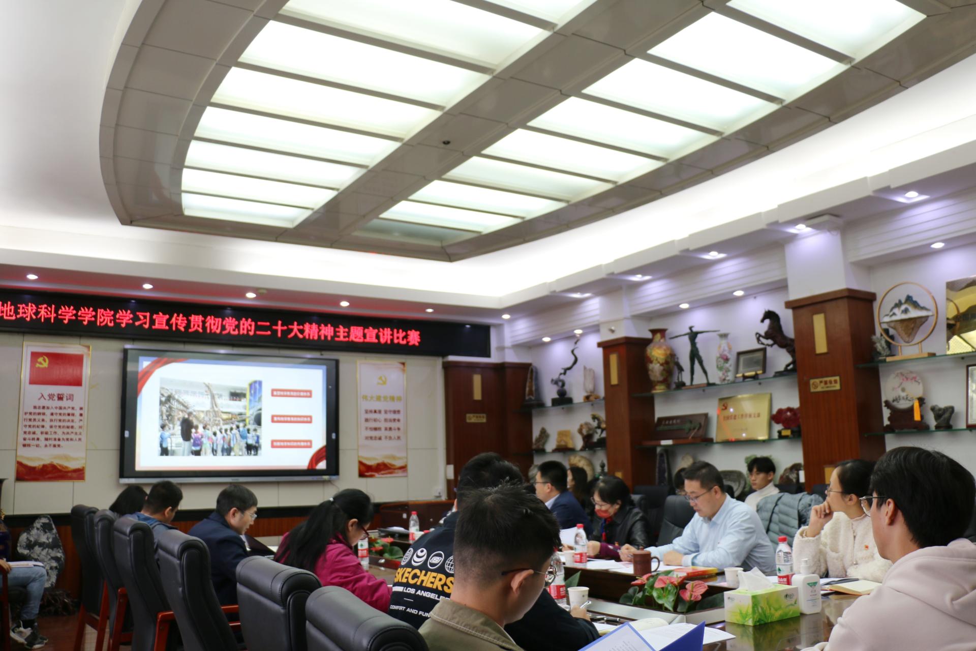 为深入学习宣传贯彻落实党的二十大精神,切实把思想和行动统一到党的二十大精神上来,引导广大学生党员坚定理想信念,汲取奋进新时代的强大力量,不懈拼搏进取,立志做有理想、敢担当、能吃苦、肯奋斗的新时代好青年,在线av 于11月22日下午在主楼地质斋举办学习宣传贯彻党的二十大精神主题宣讲比赛。