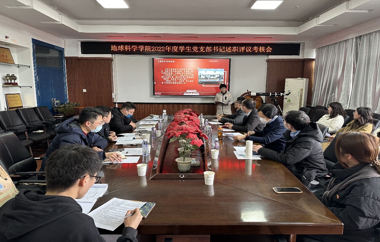 2月17日,在线av 2022年度学生党支部书记述职评议考核会于主楼412会议室举行。在线av 专职组织员闫鱼,学院党委书记周刚、副书记赵得爱,地球物质科学系党支部书记王连训,学工组辅导员、全体学生党支部书记参加会议。